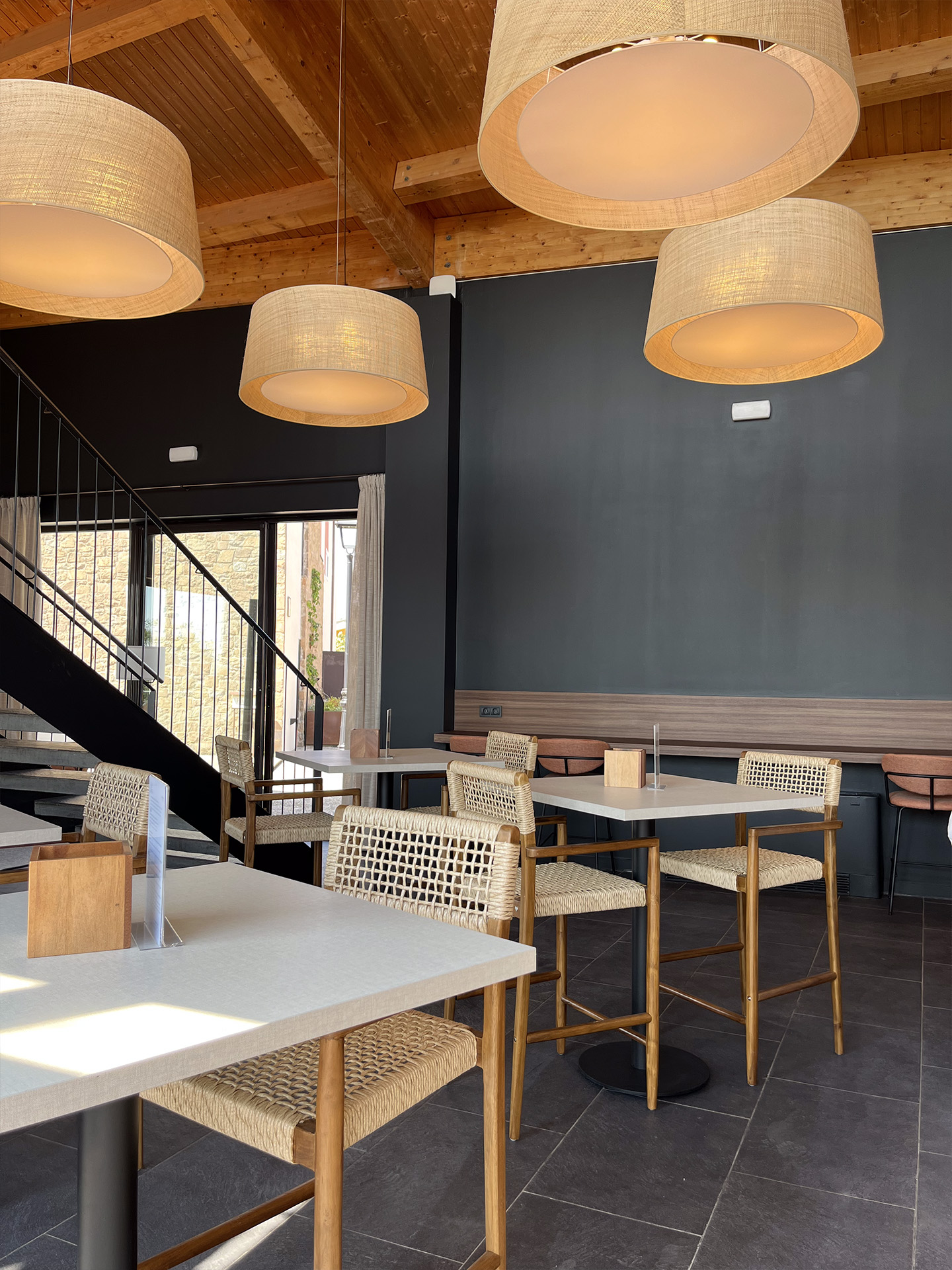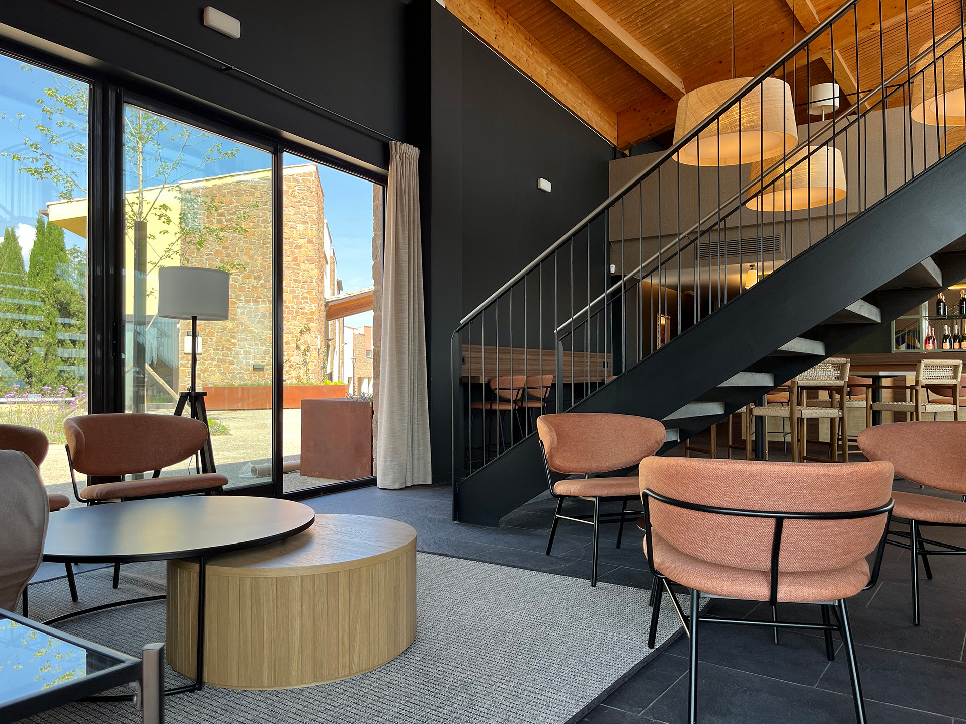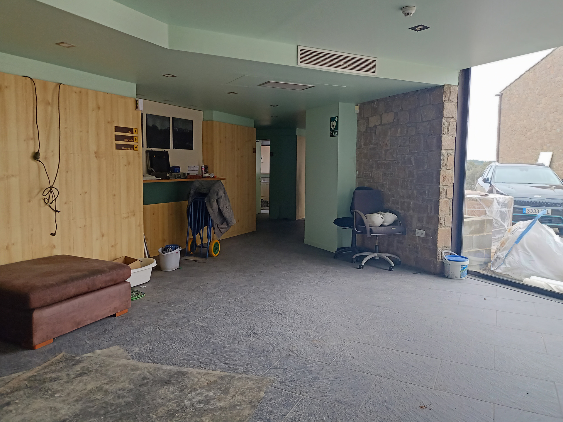 Transformamos un antiguo albergue rural en un encantador hotel para eventos mediante una intervención que revitalizó las zonas comunes. Realizamos un completo lavado de cara, sustituyendo revestimientos y manteniendo los suelos existentes, al mismo tiempo que creamos una imagen corporativa elegante y rústica. Utilizamos madera noble de nogal con tonos antracita para lograr este equilibrio estético.