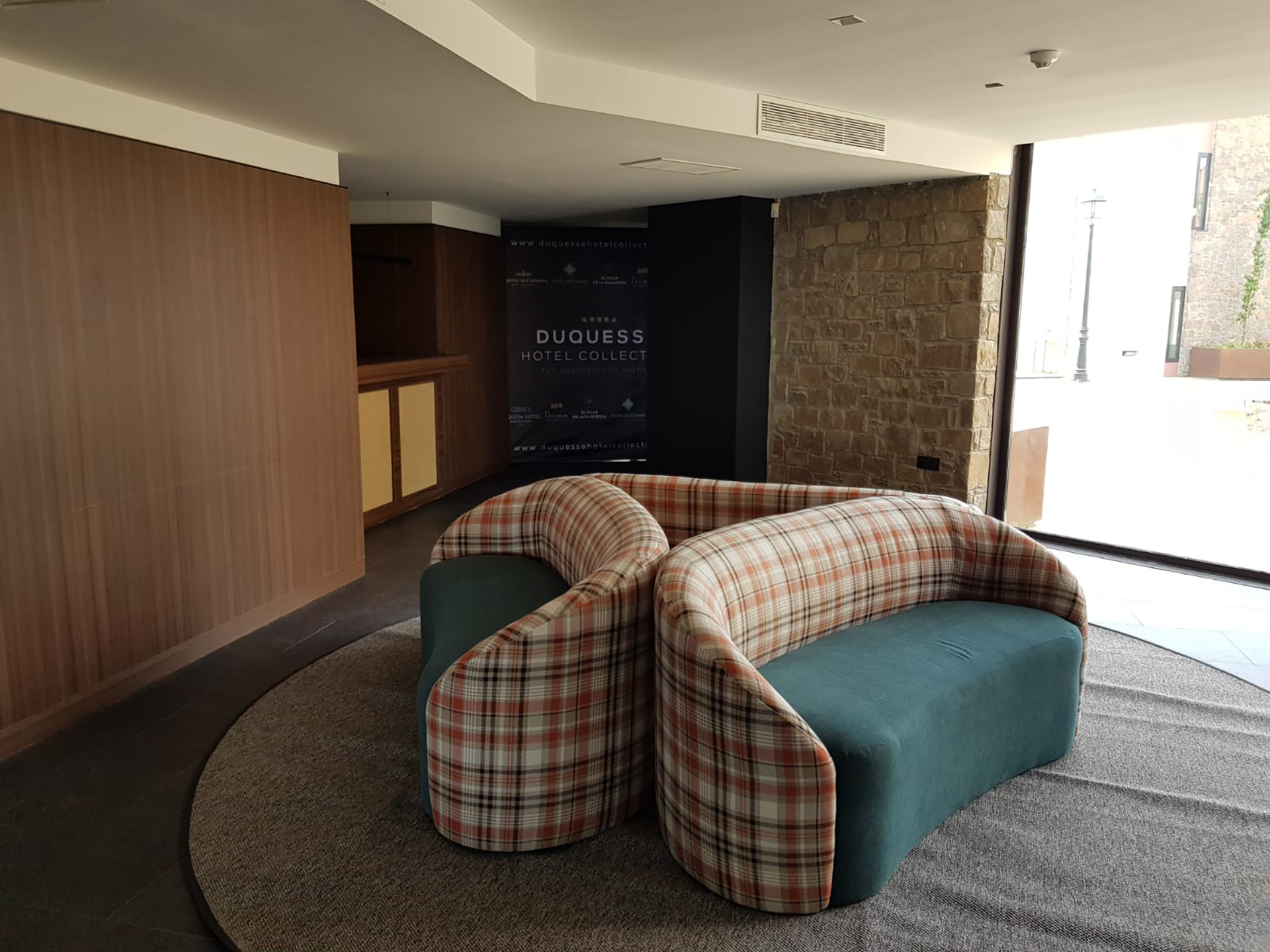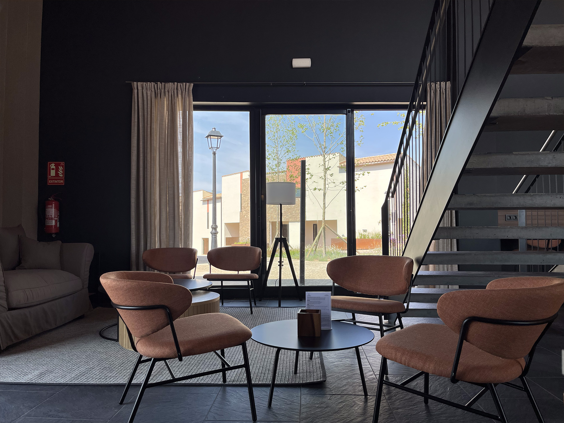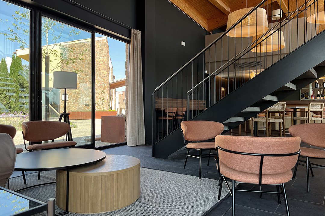 Transformamos un antiguo albergue rural en un encantador hotel para eventos mediante una intervención que revitalizó las zonas comunes. Realizamos un completo lavado de cara, sustituyendo revestimientos y manteniendo los suelos existentes, al mismo tiempo que creamos una imagen corporativa elegante y rústica. Utilizamos madera noble de nogal con tonos antracita para lograr este equilibrio estético.